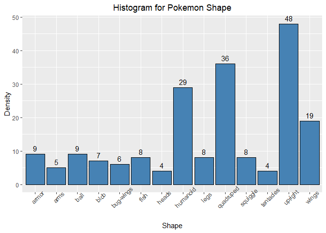 labs(x = "Shape", y= "Density", title = 'Histogram for Pokemon Shape') +